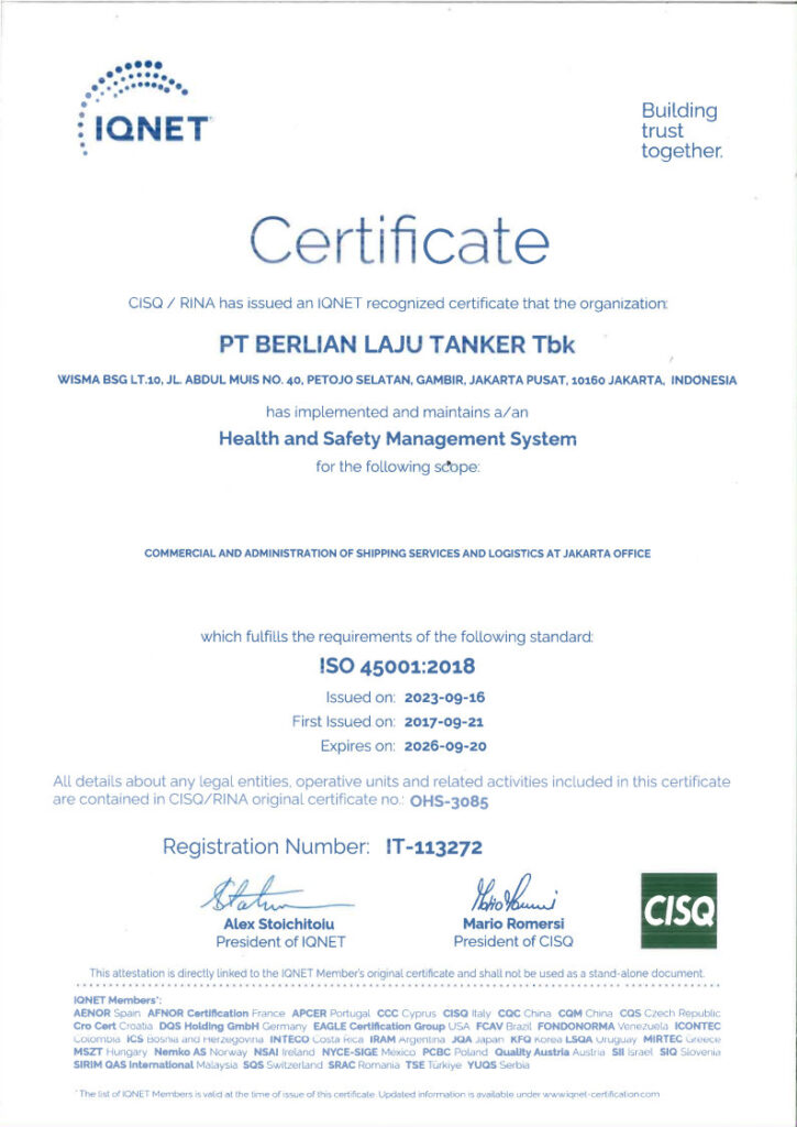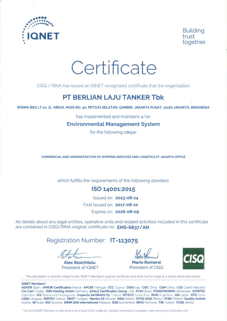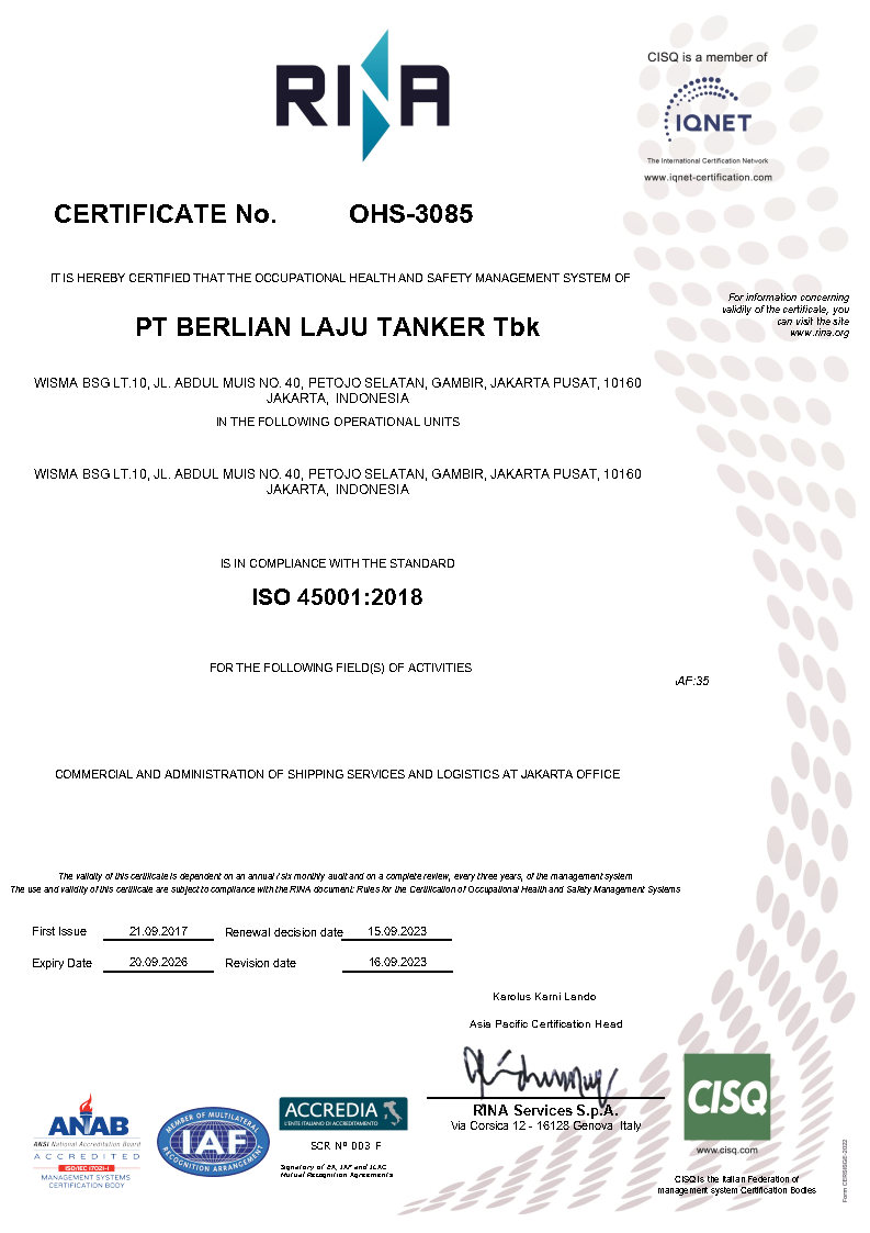 WELCOME TO PT BERLIAN LAJU TANKER Tbk